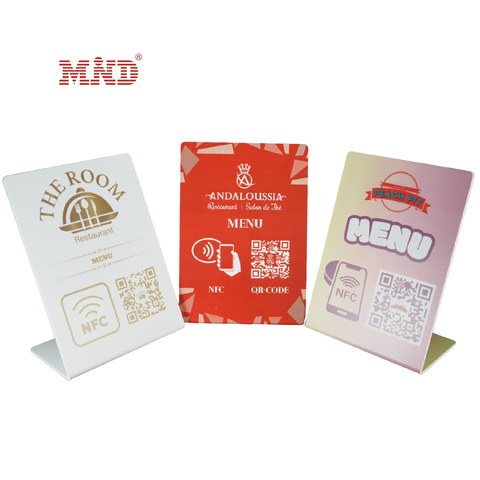レストランバーカウンターディスプレイスタンドNFCプログラマブルチップとカスタムブランディング付き